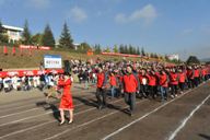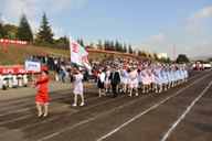 上午9时,1万余名师生沐浴在金秋的阳光下,19支师生代表队踏着欢快、激昂的运动员进行曲,迈着矫健的步伐入场后,全体起立,奏唱中华人民共和国国歌。
