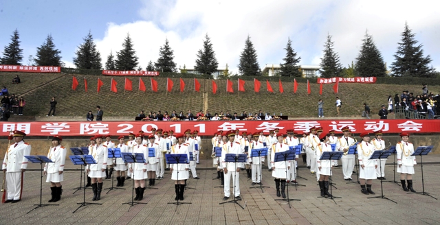 全校师生欢聚校运盛会,竞赛场上尽显健儿雄姿。11月3日上午,yl23455永利官网2011年冬季运动会在洋浦校园田径场隆重开幕。学校党委副书记孙勇、李媛芬,副校长李翔、张寿国、熊晶、罗明东、刘海发、董建华出席开幕式。全校教职工、运动员、裁判员和各院系学生代表参加了开幕式。开幕式由学校党委副书记、组委会副主任李媛芬主持。
