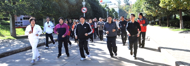 10时许,在聂耳广场还举行了“yl23455永利官网教工文化协会(俱乐部)成立暨2011年教工运动会”教职工环校园跑项目起跑仪式。党委副书记李媛芬发令,在党委副书记孙勇、副校长李翔等校领导的领跑下,全校1500余名教职工开始了环校园跑。充分展示了全体教职员工热爱生活、热爱学校、热爱教育、热爱学生,追求健康,团结一心,把校园当家园建设,把学生当自己的孩子来培养。