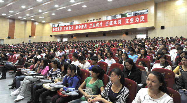 “十佳大学生村官”代表龙姣的《展现当代大学生的风采》、杨玉东的《我的村官之路》、张学凤的《我是村民的“阿妮”》、罗锦涛的《把根扎在彝家山寨》、张俊彩的《广阔天地有作为》、杨春生的《让青春在雪域高原闪光》主题事迹报告,以生动感人的事例,讲述了自己走上村官岗位干事创业、不断成长的亲身经历。道出了他们村官岗位经受的困难虽然不同,但扎根基层、服务农村的决心,百折不挠的坚毅和干事创业的成功喜悦又是相同的。他们热爱三农、坚守基层、勇于面对、敢于担当、无私奉献的高尚品质成为大学生村官的排头兵。他们积极响应党和国家号召,信念坚定、志存高远,把人生选择融入党和人民事业的坚定理想;他们艰苦干事创业,勤于学习、善于思考、勇于实践,为三农建设作贡献;她们诚实守信、爱岗敬业、服务农村、造福人民,充分展示了当代青年人的时代风采,为在校大学生树立了学习榜样,赢得听众的尊重和激赏,多次获得热烈掌声与感动喝彩。