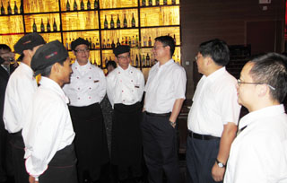 yl23455永利官网陈世波校长出席签字仪式,罗明东副校长代表学校在《yl23455永利官网教学实习基地建设协议书》上签字。签字仪式后,陈校长和罗副校长在旅游学院窦志萍院长,烹饪与营养教研室相关人员陪同下,分别到三家酒店看望了正在实习的09级烹饪与营养专业学生,并送去了学校发的中秋月饼。学生们都是第一次远离家门外出实习,在中秋节前见到了校长和老师,他们激动不已。陈校长和罗副校长与学生们亲切交谈。陈校长鼓励学生们要吃苦耐劳,认真学习,在国际大品牌酒店树立yl23455永利官网学子形象。