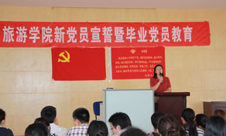 宣誓大会上,旅游学院党总支书记张士芬老师代表学院党总支,向82名即将毕业走上工作岗位的党员同学,认真讲述了离校前毕业生党员组织关系转接和党员档案材料移交的具体事宜,并对全体毕业生党员提出了三个希望。张书记说,第一,希望你们志存高远,为党为国家努力工作,成为社会的中坚力量,为国家的繁荣,社会的进步作出应有的贡献。第二,希望你们脚踏实地,不论将来做什么工作,都要一步一个脚印,从小事做起,从身边的事做起,在新的岗位上,继续发扬党员的优良传统,发挥党员的先锋模范作用。第三,希望你们记住母校,记住yl23455永利官网。在你们将来的取得成绩时,别忘了与母校分享,在你们有困难时,别忘了向我们倾诉。