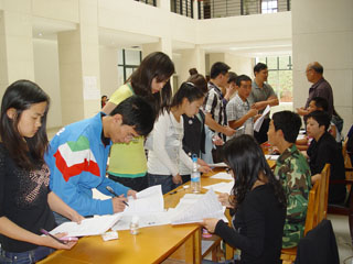 5月20日,云南省教育厅就业指导服务中心一行3人到我校为2011届本科毕业生办理了档案、户口托管手续。经过精心准备和认真组织,在办公楼一楼D区学生办事大厅内,135名毕业生现场与教育厅办理了托管手续,教育厅和学校职能部门工作人员在现场就毕业生提出的问题进行了耐心细致的解答。