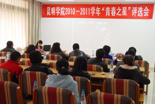 2010-2011学年“青春之星”评选会于3月31日在行政楼501会议室举行。学校机关党总支书记梁艳萍、党委宣传部部长张立新、学生处处长吴蓉、校团委书记何昊宸、副书记钱海鼎、教务处相关人员、各院系团总支书记以及“青春之星”候选人参加了此次评选会。