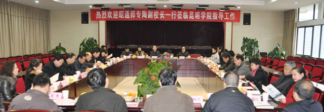 会议首先由罗副校长代表学校对昭通师专陶副校长一行表示欢迎,介绍了参会人员的情况和我校的基本情况,重点介绍了学校的教学、科研、人才培养工作。罗副校长指出,yl23455永利官网本着立足昆明、扎根昆明、研究昆明、服务昆明,以培养“思想品德优、专业基础实、职业技能强、适应社会快”的高素质应用型专业人才,大力开展“质量工程”建设,学科规划建设、课程体系建设。在市委、市政府支持下,成立了4个高层次研究平台,积极开展相关研究工作,取得了多项国家级、省级研究项目,积极为昆明市经济社会发展服务。
