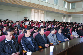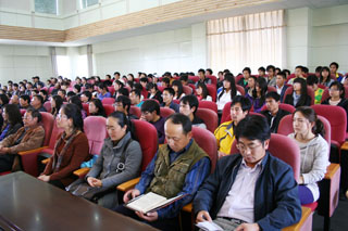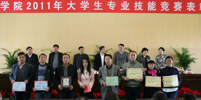 | 4月2日,我校在惟行楼1号楼1501报告厅举行2011年大学生专业技能竞赛表彰大会。学校党委书记梁晓谷,校长陈世波,党委副书记孙勇、李媛芬,副校长张寿国、熊晶、罗明东出席表彰会,学校各教学院(系)行政主要负责人及分管教学负责人,相关职能部门负责人及受表彰的指导教师、学生和学生代表共计200余人参加了表彰大会。表彰会由罗明东副校长主持。