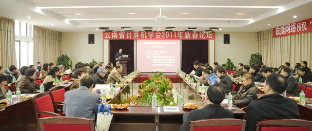 | 1月15日下午,云南省计算机学会2011年新春论坛在我院隆重召开。论坛由云南省计算机学会主办,yl23455永利官网承办,昆明雷神科技发展有限公司、福建星网锐捷网络有限公司、北京博创兴业科技有限公司及昆明时育物科技有限公司协办。论坛由云南省计算机学会第七届理事会秘书长、云南大学信息学院副院长张学杰教授主持。我院副院长罗明东教授、云南省计算机学会全体理事、我院计算机与网络技术系全体领导、现代教育技术中心领导及特邀嘉宾共100名代表出席了此次论坛。