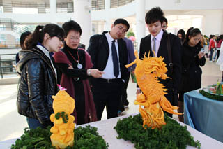 在午间休息时段,国家旅游局“名导进课堂”活动的嘉宾和来自西南林业大学、云南农业大学、云南国土资源学院、云南省旅游学校的师生们一起参观了旅游系学生专业技能展示系列活动,现场观看了旅游系学生的雕刻展示,品尝了旅游系同学的茶艺和现场调制的鸡尾酒,并观看了花式调酒表演。大家对旅游系学生的专业技能均表示非常赞赏,希望能够像旅游系学习,把现代旅游从业者培养成为综合素质高、动手能力强的复合型人才。