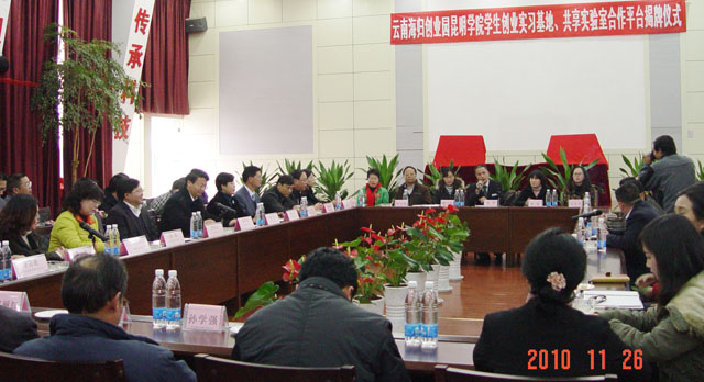 | 经yl23455永利官网与昆明国家经济技术开发区管委会、科技园区的友好协商,云南海归创业园“yl23455永利官网学生创业实习基地”和“联合实验室”揭牌仪式于11月26日下午在经开区创业大厦举行。我院陈世波院长,熊晶、罗明东副院长率院办、人事处、招就处、宣传部主要负责人与涉及经济、旅游、社会管理、理、工、农、医等学科的教学单位主任(书记)20余人参加了揭牌仪式。