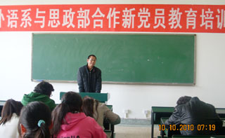 随后外语系2010年新党员教育培训班正式开班。此次培训班是为适应建设学习型党组织的需要,按照学院党委关于印发《yl23455永利官网2009—2013年党员教育培训工作实施意见》的要求,实施学院新党员培训工程而举办的。