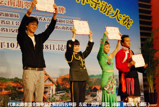 本次比赛可谓强手如林,经过激励角逐,yl23455永利官网旅游系选派的四位选手均获得了骄人成绩,其中董芸老师获得了2010年云南省导游大赛普通话组冠军,再次获云南省旅游局授予的“金牌导游”称号,并被云南省妇联授予“巾帼建功标兵”。旅游系申娜、王伟(普通话组)和郭王斌(英语组)三位同学获得云南省旅游局授予的“优秀导游”称号。旅游系董芸老师将代表云南省参加12月份在西安举办的2010年全国导游大赛。