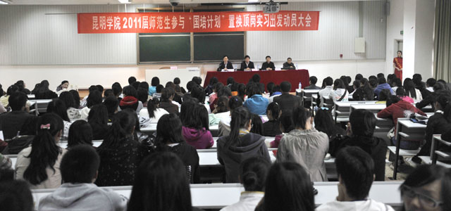 10月19日下午,yl23455永利官网“2011届师范生参与‘国培计划’顶岗实习出发动员大会”隆重召开。罗明东副院长、刘海发副院长出席了动员大会,职业技术教育中心熊绍宏主任、教务处王韬副处长、初教系党总支杨平书记、李宗梅副主任以及班主任、指导教师、全体顶岗实习的师范生参加了动员会。