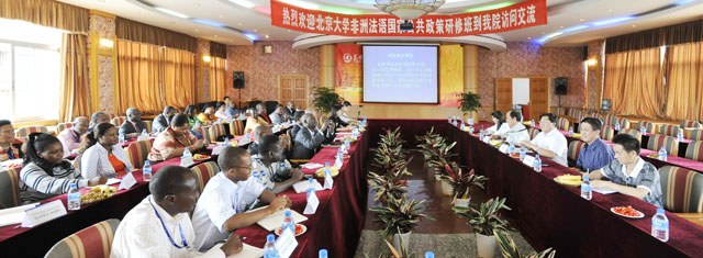 7月21日上午,北京大学政治发展与政府管理研究所所长解庆奎教授率领该校承办的“非洲法语国家公共政策研修班”学员一行36人到我院访问交流。