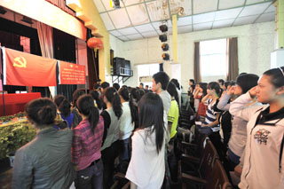 学院党委副书记、纪委书记李媛芬代表党委宣读了《关于确定yl23455永利官网创先争优活动示范点的通知》,通知中确定了我院城乡建设与工程管理系、旅游系、生命科学与技术系、外语系、计算机与网络技术系、机关党总支八支部、现代教育技术中心、图书馆8家党总支(支部)为我院首批创先争优活动创建示范点,待今年底考核,明年党委复审后,才能成为正式的示范点。大会当场由院领导为这8家党总支(支部)进行了授牌。大会在庄严的《国际歌》歌声中圆满结束。