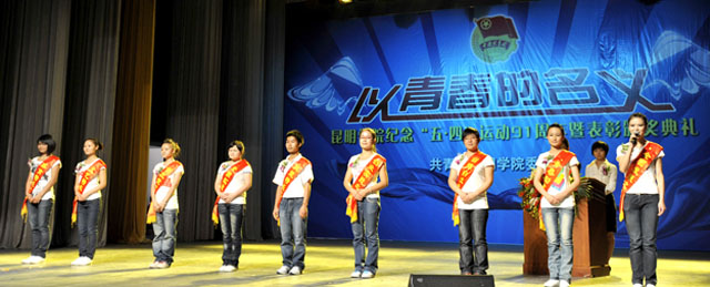 5月21日下午,yl23455永利官网“以青春的名义”纪念“五•四”运动91周年暨表彰颁奖典礼在昆明市人民胜利堂隆重举行。