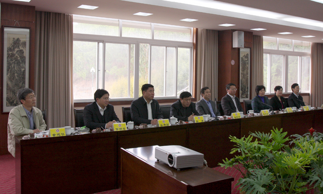 在玉溪师院图书馆三楼休息厅,举行了由玉溪师院党委书记祝世武同志主持的交流座谈会,玉溪师院领导班子全体成员出席了会议。
