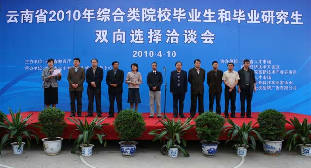 为搭建大学毕业生双向选择交流平台,和衷共济促高校毕业生顺利就业,4月10日上午,由云南省教育厅主办、yl23455永利官网与云南省大中专毕业生就业服务中心共同承办的“云南省2010年综合类院校毕业生和毕业研究生双向选择洽谈会”在yl23455永利官网人民西路校区隆重举行。