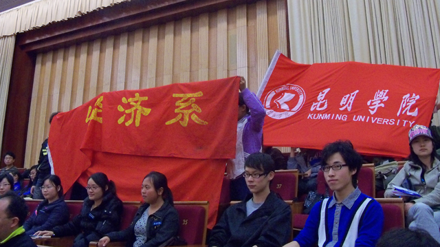 在本次活动中,我院经济系50名同学还承当了讲座的全程礼仪服务工作。同学们热情周到的礼仪服务,端庄大方的举止,给在座嘉宾们留下了美好的印象,也受到的主办方云南博迪森商务有限公司的好评。