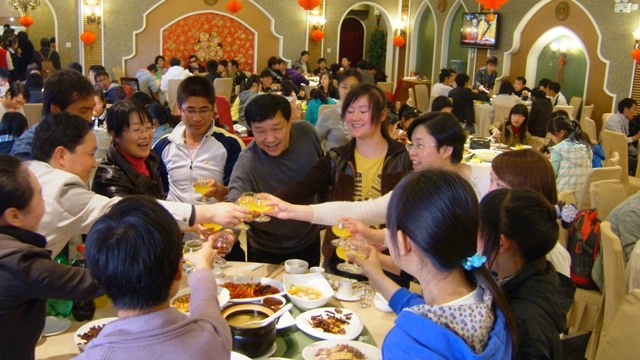 随后,慰问留校学生的宴会在欢乐祥和的气氛中开始了。孙副书记、熊副院长在学生处吴蓉处长的陪同下给在座的留校学生一一敬酒,各系留校学生代表也纷纷回敬学院领导和老师们。大家一起享用着丰盛的“年夜饭”,相互致意祝愿,欢声笑语、其乐融融,沉浸在yl23455永利官网大家庭的幸福之中。同学们满怀对学院的感激和热爱之情,表示一定不会辜负学院领导和老师们的厚望,要以优异的成绩报效祖国,报答父母。