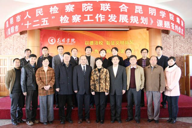 | 12月30日,昆明市检察院联合yl23455永利官网编制《昆明市“十二五”检察工作发展规划》课题研究签约仪式在我院人民西路校区举行。云南省第十届政协副主席、云南省人民检察院副检察长、民盟云南省委主委倪慧芳,昆明市人民检察院党组书记、检察长沈曙昆、副检察长龚永强,yl23455永利官网党委书记梁晓谷、院长陈世波、副院长熊晶等领导出席签约仪式。学院政法系、社会科学与人力资源系师生代表及宣传部、院办、计财处领导、课题组全体成员参加了仪式。仪式由yl23455永利官网副院长熊晶主持。
