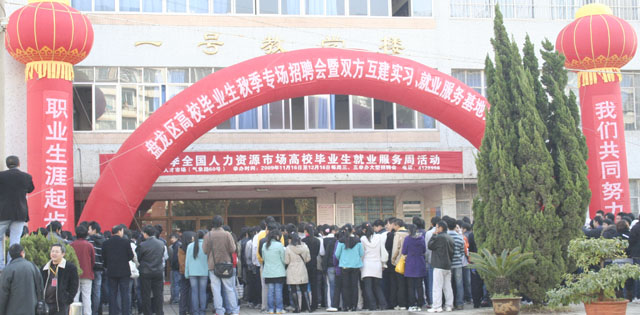 熊副院长首先代表学院向来参会的各位领导及嘉宾、向盘龙区就业局及招聘单位表示衷心的感谢。她说:针对金融危机对大学生就业工作的影响及新形势下的新变化,学院为贯彻落实党中央、国务院和省委、省政府关于做好大学毕业生就业工作的要求,认真做好2010届毕业生就业工作。我院积极与政府相关部门及企业合作,拓宽毕业生就业渠道,为用人单位和广大毕业生提供公开、平等、竞争、择优的“双向选择”平台,帮助毕业生顺利就业。今天,盘龙区就业局开展送服务进校园专项活动,yl23455永利官网与盘龙区就业局相互建立“实习、就业”、“就业服务基地”及盘龙区高校毕业生秋季专场招聘会的举办,充分体现了政府部门的服务意识,为我院毕业生搭建了良好的就业平台,必将进一步促进我院毕业生就业工作。