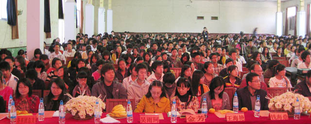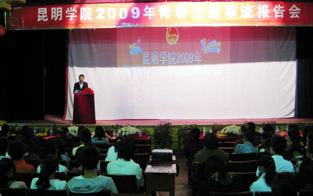 由院团委举办的yl23455永利官网2009年“青春之星”事迹报告会,11月13日下午在昆师路校区大礼堂举行首场报告。团委书记何昊宸,副书记钱海鼎、王海艳,团委全体干部、各系团总支书记、农学中专部、医学中专部团学工作负责人,以及全院团学干部代表和学生代表共700余人出席了报告会。