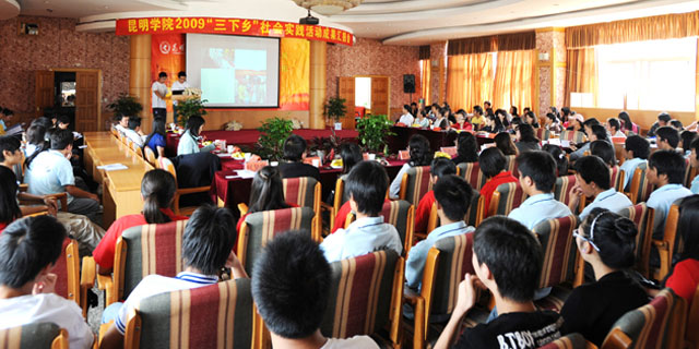 10月16日下午,院团委2009年“三下乡”社会实践活动成果汇报会在人民西路校区举行。团市委机关党总支书记王彦彦,团市委学校部部长栾丽华,学院党委宣传部张立新部长,教务处郝旭霞处长,机关党总支梁艳萍书记,保卫处方永昆副处长,学生处罗进副处长等出席了汇报会,会议由团委书记何昊宸主持。 我院本次“三下乡”根据党委宣传部、学生处、院团委联发的《关于开展yl23455永利官网2009年大学生暑期社会实践活动的通知》的文件精神,于7月上旬正式启动,历时7天。活动以“高扬爱国主义旗帜、服务科学发展大业”为主题,本着“讲求实效、就进就便、针对性强、辐射面广、安全第一”的原则,按照“全面动员、普遍参与、点面结合、重点突破”的要求,以系为单位,结合本系专业特色,学院共组织了6支志愿服务队到昆明周边县市区基层农村开展社会实践与志愿服务活动。 汇报会上,来自自机系、旅游系、生科系、经济系、计网系、政法系的老师和学生代表,分别对此次“三下乡”社会实践活动作了汇报与成果展示。各汇报系结合系部的专业特色,开展的实践活动形式多样、成果丰富,能够用理论指导实践,用调研成果服务农村、服务社会、服务昆明的实践活动。 党委宣传部部长张立新代表学院活动领导小组讲话肯定:6个系的汇报都反映出了此次社会实践主题突出,准备充分,各系领导和相关老师高度重视,积极支持,责任心强,有的亲自带领学生到农村指导调研服务;各系结合专业特长开展科学发展观政策、普法、科普、环保宣传,进行家电维修、爱心捐赠、社会调研、参观访问、劳动体验、文体活动等,既充分认识社会和乡情,也找正自己的角色位置,以我所能服务社会,为今后发展积累经验,为学院服务地方经济发展,锻炼培养了师生干部,宣传展示了学院办学实力和育人水平,与地方建立良好合作关系,做出实绩。衷心感谢团市委领导和相关处室领导的关心支持,衷心感谢6支小分队的系领导、老师、同学的艰苦努力和辛勤奉献。 会上,团市委机关党总支书记王彦彦作了重要讲话。王书记对我院的“三下乡”社会实践工作给予了充分肯定,她指出,我院的“三下乡”社会实践活动准备充分、成果丰富,特别是通过这次活动让同学们了解了社情民意,倾听到了基层人民群众的心声,找到了奋斗和努力的方向,确实增强大学生服务社会、报效祖国责任感和使命感,发现问题、分析问题、并解决问题的能力得到了进一步的提高,砥砺了品格、磨练了意志、收获了真知、陶冶了情操、树立了理想。这次社会实践活动既是一次同学们了解社会、服务社会的尝试,更是一次理论与实践相结合的马克思主义的第二课堂。 此次“三下乡”社会实践活动是学院团委认真学习贯彻十七大精神,深入开展学习实践的科学发展观活动的重要举措,也是加强和改进大学生思想政治教育、帮助大学生在实践中深刻理解科学发展观重大意义、发挥大学生人才智力优势、服务新农村建设的有效途径。相信此次活动的开展,将为大学生体验农村、融入社会搭建平台,为我院团学工作的不断推进和现代新昆明建设贡献力量。