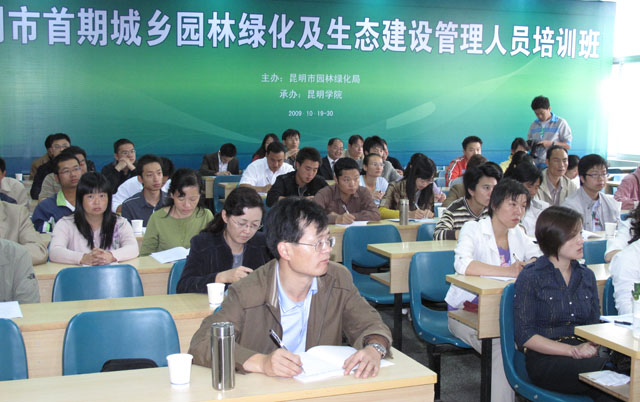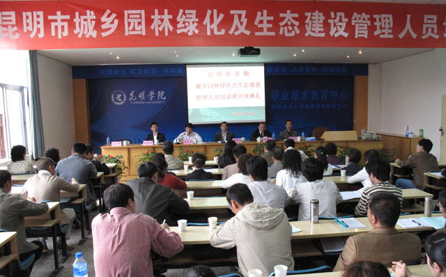 根据昆明市委、市政府提出“建设生态昆明绿色家园”的要求及昆明市“2009年城乡园林绿化及生态建设工作现场会”精神,经市政府批准,由yl23455永利官网与昆明市园林绿化局联合举办的“昆明市城乡园林绿化及生态建设管理人员培训班”开班仪式,于10月19日在我院昆师路校区举行。我院党委书记梁晓谷,昆明市政府副秘书长周峰越,市园林绿化局局长张家仁、副局长汪天祥等领导出席开班仪式。开班仪式由我院刘海发副院长主持。 参加本次开班仪式的学员有来自五华、盘龙、官渡、西山四个区和经济技术开发区、高新开发区、旅游度假区60余人从事林绿化管理一线工作人员。该培训将分期分批对全市范围内从事园林绿化建设和管理部门的企、事业从业人员进行短期与长期相结合的基础业务培训。 培训旨在努力提升我市城乡园林绿化管理人员的业务素质和管理水平,适应我市“建设生态昆明、绿色家园”的目标要求,把昆明建设成为“森林式、园林化、环保型、可持续发展的高原湖滨生态城市”。这既是市政府贯彻落实科学发展观的具体要求,也是我院发挥教学科研优势,积极为昆明谋求经济社会跨越大发展做贡献的现实需要。 梁书记出席开班仪式并作讲话。梁书记从贯彻昆明市2009年城乡园林绿化及生态建设工作现场会的精神、昆明市城乡园林绿化的基本情况和举办本次培训班的背景等方面,阐述了举办城乡园林绿化及生态建设管理人员培训的重要意义和作用。同时,梁书记向学员们提出了三点希望:一是希望认真对待培训工作,带着问题、善于思考,安心、认真听好每一堂课;二是希望严格学习纪律,做到学习有考核、管理有制度;三是希望用学到的理论指导实际工作,在岗位实践中不断向市园林绿化局和我院职教中心反馈宝贵建议,提出希望教师教些什么?怎么教的要求。 周副秘书长受陈勇副市长的委托代表市政府向首期城乡园林绿化及生态建设管理人员培训开班表示祝贺。他强调:今年昆明市城乡园林绿化及生态建设的主要任务是突出总量扩张和质量提升“两个重点”。他希望各位学员珍惜学习机会,培训结束后回到工作岗位上,一定要按市委、市政府的要求,按照昆明市城乡园林绿化的总体规划和工作部署,精心组织,真抓实干,充分发挥园林绿化管理人员的骨干作用为全市经济社会又好又快发展作出新的更大的贡献! 开班仪式上,张局长从我市园林绿化发展状况和个人体会等方面谈了加强城乡园林绿化及生态建设管理人员培训的必要性。他透露,今后昆明市的每一名园林绿化管理人员都必须经过培训考核,持证上岗。 开班仪式结束后,与会领导和全体受训学员合影留念。