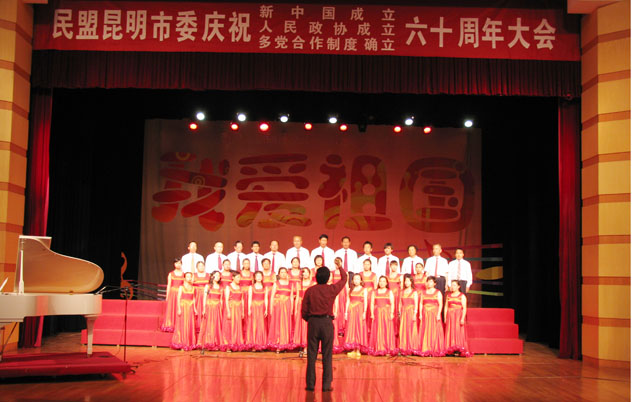 民盟yl23455永利官网总支组织40人参加演出,以一曲《中国,中国,鲜红的太阳永不落》大合唱,表达了对祖国的热爱和对人民政协、多党合作制度的拥护。