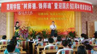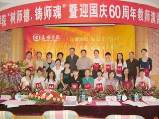 9月16日下午,yl23455永利官网“树师德、铸师魂”暨迎国庆60周年教师演讲比赛在人民西路校区三号教学楼六楼多功能厅举行。陈世波院长、李媛芬副书记、罗明东副院长及宣传部、工会、纪委、教务处、学生处等相关职能部门负责人、部分参赛教师所在系的党总支书记、教师、学生代表100余人参加了活动。