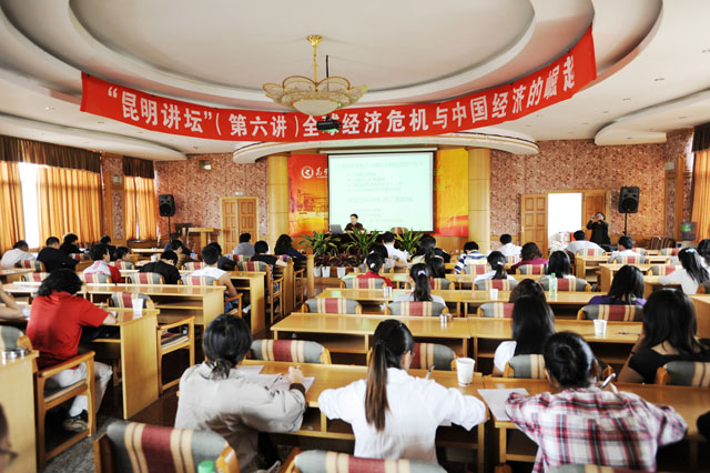 7月1日下午,我院邀请美国哈佛大学博士、美国伊利诺伊州立大学张宏霖教授主讲“昆明讲坛”第六讲,主题为:“全球经济危机与中国的崛起”。报告会由昆明科学发展研究院办公室主任管彦平主持。yl23455永利官网院长陈世波、副院长熊晶及部分系室领导、教师和学生代表现场聆听了张教授的精彩报告。