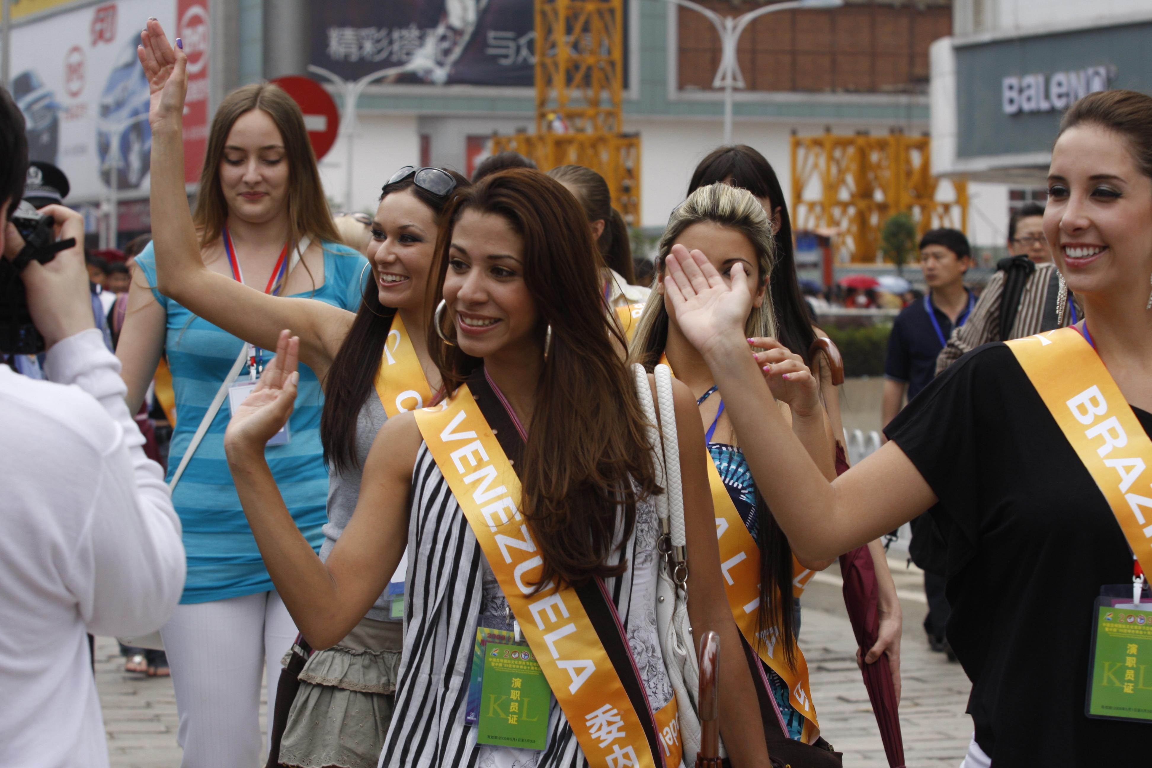 由于有全球45个国家和地区的佳丽加盟鼎力助阵,整个宣传活动十分吸引眼球。下午3:30分,佳丽们在南屏街东口一出场,我院在此地等候的师生观众不仅一睹她们的芳姿风采,而且零距离与她们见面,并收到佳丽们亲手分发的“保护滇池”公益宣传资料。