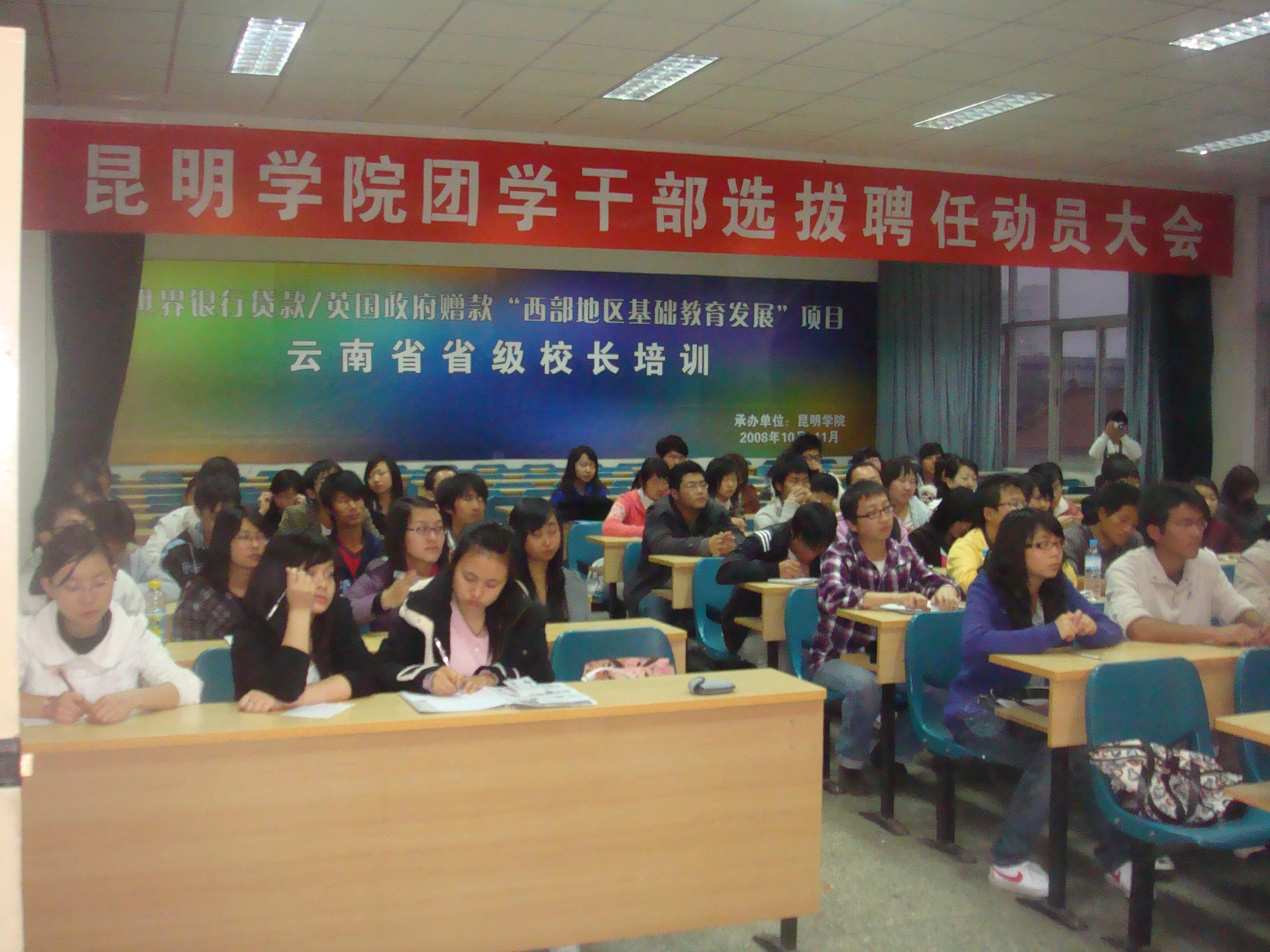 3月6日晚7点,yl23455永利官网团学干部选拔聘任动员大会在昆师路校区5402报告厅召开。团委书记何俊,副书记钱海鼎、王海艳,团委全体干部以及各校区团学干部代表出席了本次会议。