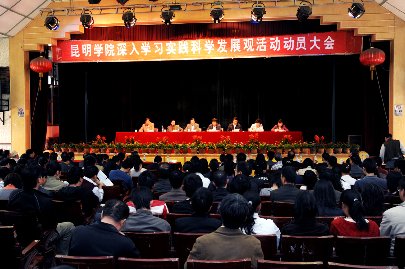 3月20日下午,我院党委在昆师路校区礼堂组织召开了学习实践科学发展观动员大会,部署整体活动,这标志着我院学习实践科学发展观活动正式启动。学院领导、全体中层干部(含党外干部),各总支、直属支部委员、离退休党总支、党支部书记,学院在省市担任党代表、人大代表、政协委员、各民主党派基层组织负责人,学生党员代表以及活动领导小组办公室全体成员参加了会议。省委学习实践科学发展观活动第15指导检查组全体成员共计300余人出席会议。会议由学院党委副书记、院长陈世波主持,党委书记梁晓谷作了专题动员讲话,省委第15指导检查组组长杜胤翔作了重要指导讲话。