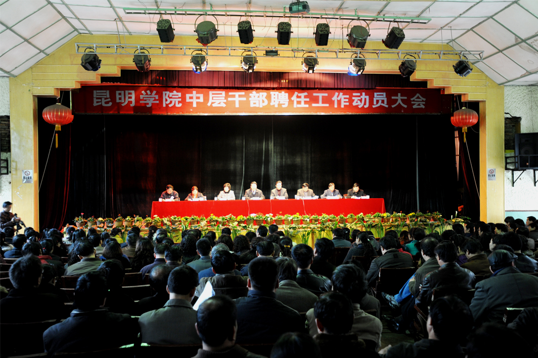 12月26日中午1:30,我院中层干部聘任工作动员大会在昆师路校区礼堂举行。这次大会的召开标志着我院中层干部聘任工作正式启动。我院全体院领导、原两校中层干部(含负责人和干部助理)、以及副高职称以上教师约300余人参加了此次大会。会议由孙勇副书记主持。