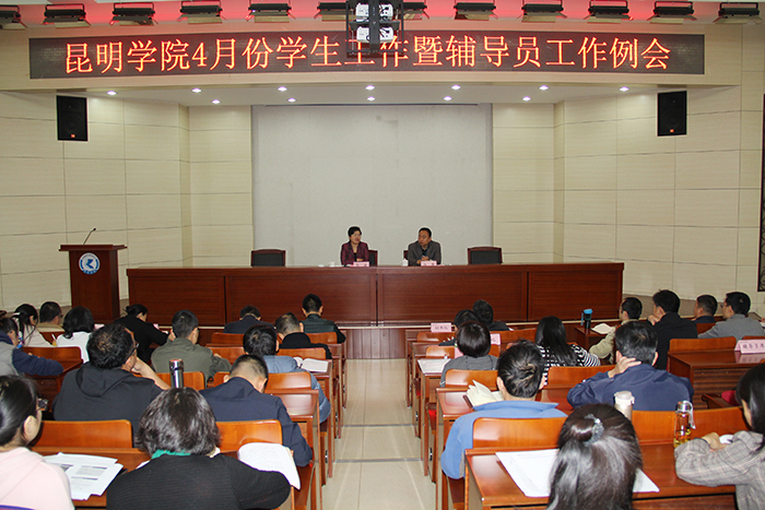 会上,保卫处通报了近期校园治安情况;校团委对学雷锋活动、防范电信网络诈骗主题活动开展情况作了通报,对五·四表彰活动等工作作了安排;武装部通报了我校2018年大学生征兵工作的情况,并结合上级会议要求,对我校2019年大学生征兵工作作了说明和安排;学生处对首届云南省高校辅导员名师工作室评选情况、我校第十四届云南省大学生年度人物评选推荐情况、2019年评优工作进行了通报,对2018-2019学年“优良学风班”创建中期检查考核、4月份优秀主题班会评选活动、2019年“师生健康中国健康”主题健康教育活动、2019年大学生梦想采集工作、第九届云南省高校文化节系列活动、2019年家庭经济困难学生认定、易班建设等工作进行了安排布置。