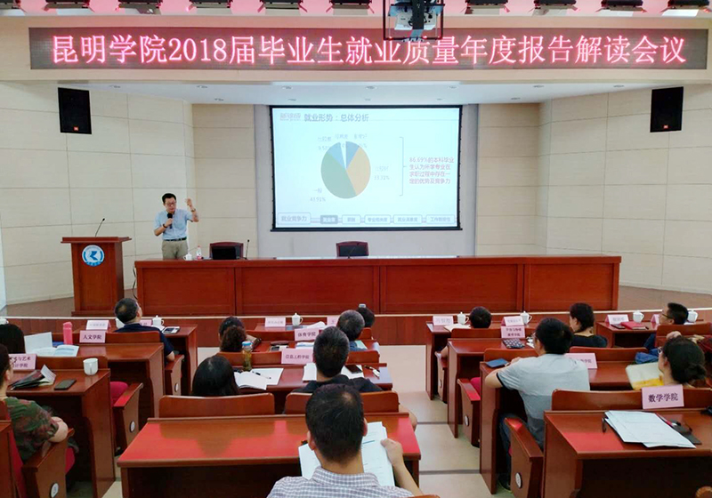 会上,张景岫执行院长就我校2018年就业质量报告做解读。张院长从主客观两个方面对本次就业调研做解读,客观方面真实的反映学校毕业生的就业状况,主观方面通过毕业生回看四年来的培养过程,看看学生们对学校的培养有什么意见。就业报告从就业质量、薪酬水平、工作稳定性、就业职业等多个角度进行调研,对学校的培养目标设定和培养质量有很好的反馈。