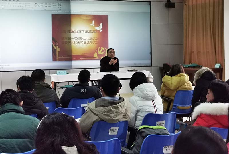 12月21日,根据《yl23455永利官网教职工代表大会实施细则》及学校工会工作文件的规定和要求,经过认真筹备,旅游学院三届一次教代会暨选举yl23455永利官网第三届教代会代表大会在惟行楼1106顺利召开。旅游学院党委书记王建华主持会议,旅游学院全体教职工参加。