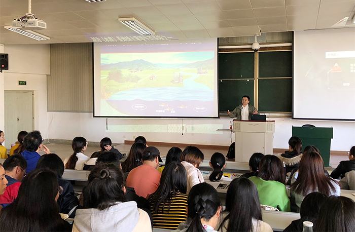 11月30日,受学校滇池保护与治理专家工作站邀请,吴庆龙教授到我校做《湖泊蓝藻水华的环境效应及控制对策》专题报告,会议由滇合中心、化科系主持,化科系、生科系师生共150余人参加会议。通过讲授及提问环节,学生对专业知识的实践应用有了新的了解,研讨会取得了良好的效果。