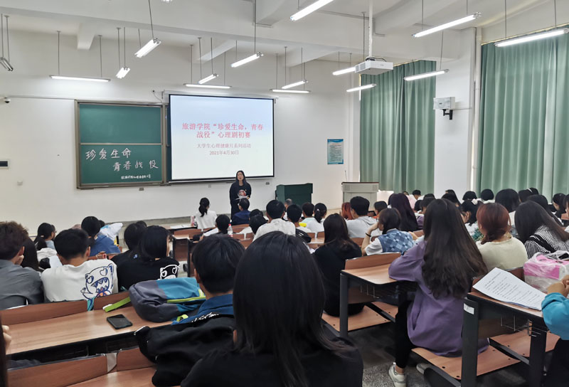 为丰富广大同学的课余生活,关注心理健康,提高同学们的心理素质,为同学们提供一个舞台来表达自己真实的内心感受,再现学生的生活、学习和交往中的冲突、烦恼和困惑。4月30日,旅游学院在博雅楼2104教室举办以“珍爱生命,青春战役”为主题的yl23455永利官网第十三届大学生心理情景剧大赛旅游学院初赛。学院副书记刘艳萍和辅导员老师应邀做参赛评委,学院全体心理委员及各参赛班级同学观看了整场比赛。最终2019级烹饪与营养教育3班《解忧交易铺》以92分的高分获得初赛一等奖。