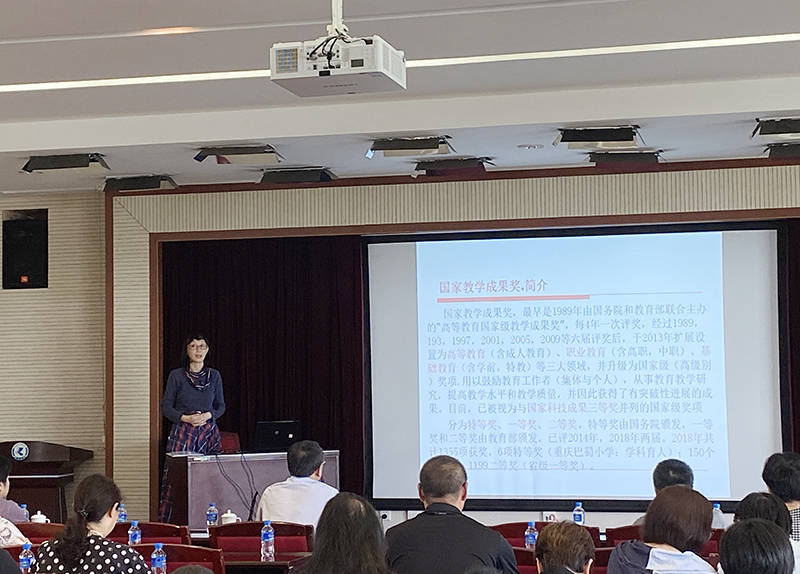 培训会上,赵伶俐教授就近年来国家级教学成果奖的申报、获奖情况进行了介绍,同时结合yl23455永利官网的办学特色及优势,国家经济、教育、科技、文化等方面的政策导向,为学校今后申报教学成果奖在选题、申报策略及战略等方面提出了宝贵的建议。