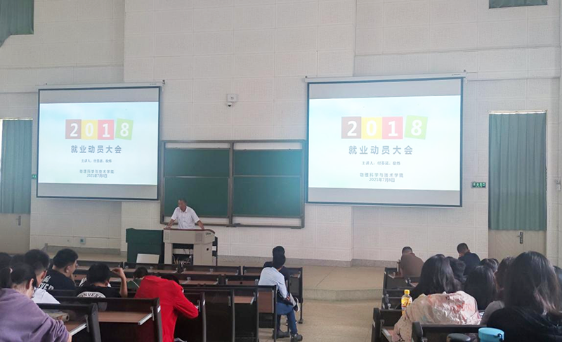 7月8日,物理科学与技术学院在yl23455永利官网博雅楼2101召开2022届毕业生就业促进动员大会暨假期安全宣讲会。为确保2022届毕业生顺利开展就业实习和学生假期安全稳定工作夯实基础。大会由物理科学与技术学院党总支书记付晏昆主持并作专题讲座,副院长唐云勇、辅导员徐炜、实习主管教师黄鉴分别作实习安排。2022届全体毕业生参加动员大会。