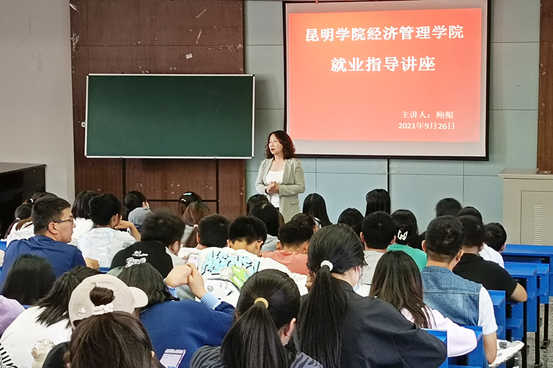 9月26日,经济管理学院在昆师路校区阶梯教室举办了“2022届毕业生就业指导”最后一场讲座,为国际经济与贸易、工商管理、物流管理、人力资源管理和城市管理5个专业7个班共232人展开宣讲,帮助毕业生解决就业中的困惑,进一步树立正确的就业观和择业观,全面了解目前的就业形势、就业政策,转变就业观念,提高就业技能。学院党委副书记鲍鲲和辅导员陈竹俊担任主讲。