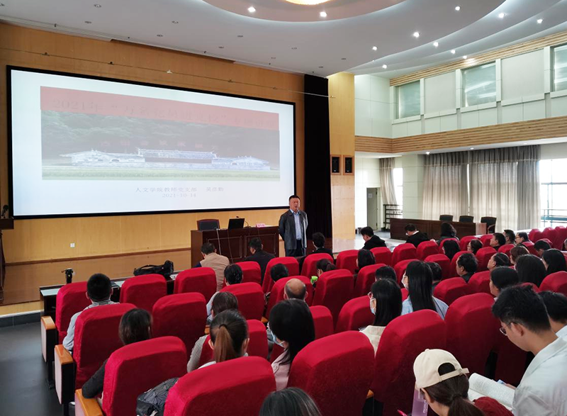 1014日,人文学院党委、后勤集团党总支、图书馆党总支在惟行楼1501报告厅联合举办“万名党员进党校”培训活动,培训内容是人文学院吴彦勤教授主讲的“古田会议永放光芒”,全体党员和科级以上干部参加。