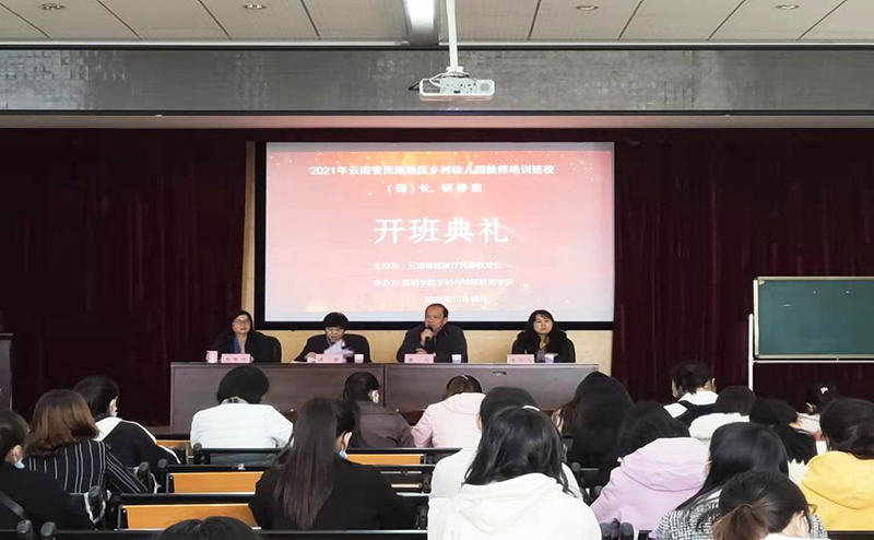 10月15日—月19日,云南省教育厅民族教育处主办,yl23455永利官网学前与特殊教育学院承办的2021年度民族地区幼儿园教师培训班顺利举办。此次培训学员为来自云南省16个地州民族地区的乡村幼儿园园长、中心校长、骨干教师,共计90人。云南省教育厅民族教育处处长董一凡、调研员李宇飞,yl23455永利官网学前与特殊教育学院院长唐敏出席开班典礼,学前与特殊教育学院副院长高春玲主持。