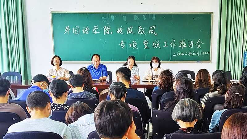 5月27日,外国语学院在博文楼2503会议室召开“校风教风学风”专项整治工作推进会。学院党委书记杨斌主持会议,学院党政班子成员及全体教职工参加会议。