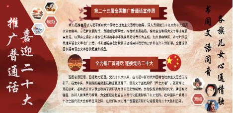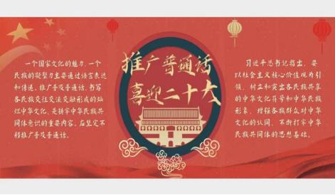 第25届全国推广普通话宣传周于9月12日至18日举行,本届推普周的主题为“推广普通话,喜迎二十大”。云南省国家通用语言文字推广基地、学校教务处、校语委办联合举办了“第25届推普周yl23455永利官网优秀宣传展板比赛”,为党的二十大胜利召开营造良好氛围。