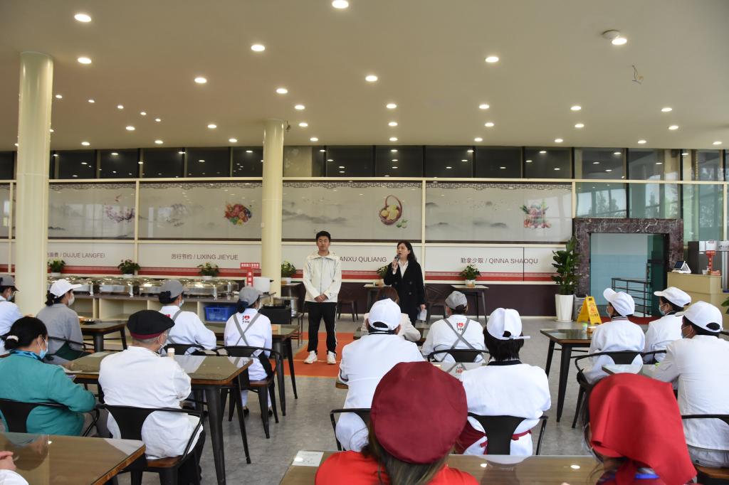 10月11日下午,保卫处、后勤集团联合在润泽苑教工食堂对全校食堂员工、宿舍管理人员开展消防安全知识培训和食堂油锅起火、火盆起火灭火的演练,全校食堂员工、宿舍管理人员共52名人员参加,保卫处副处长喻玲主持本次培训。