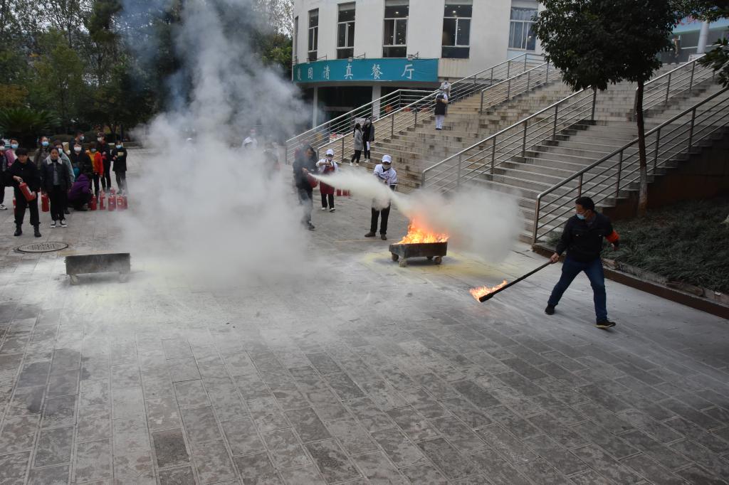 本次培训邀请云南华烁消防培训学校教师作指导,培训结束后,保卫处工作人员随即组织食堂员工、宿舍管理员进行火盆起火灭火演练。培训演练达到了预期效果,使食堂员工、宿舍管理人员提高了消防安全意识和消防安全技能,为创建“平安和谐校园”夯实了基础。