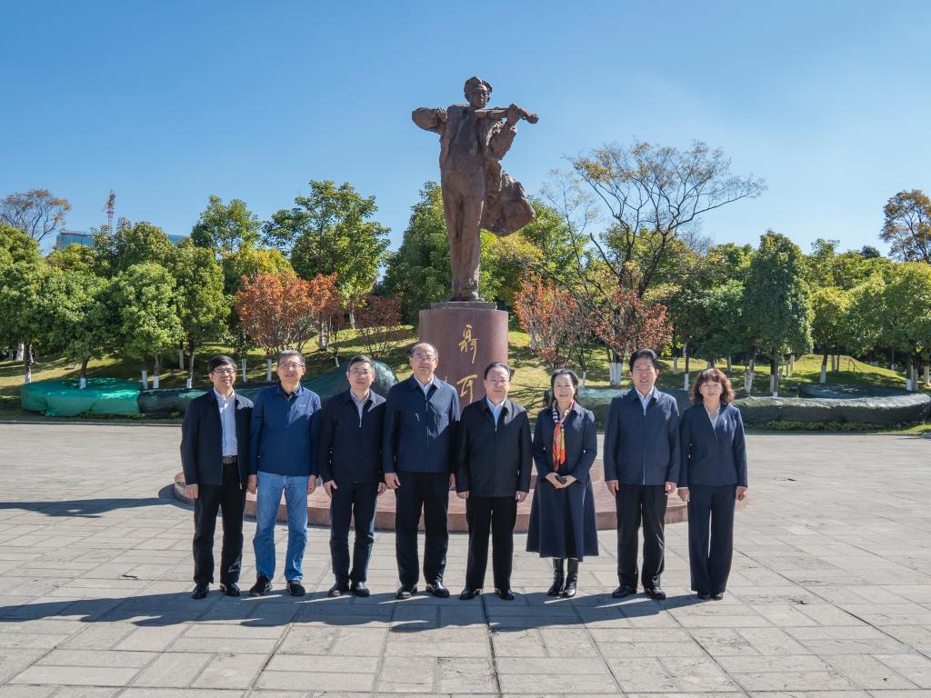 座谈会前,谭铁牛一行在金幼和等校领导陪同下参观了滇池流域生态文化博物馆、附属幼儿园,并在聂耳像前合影留念。